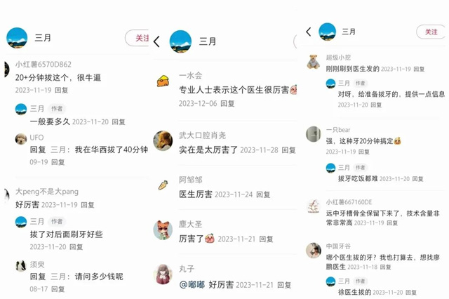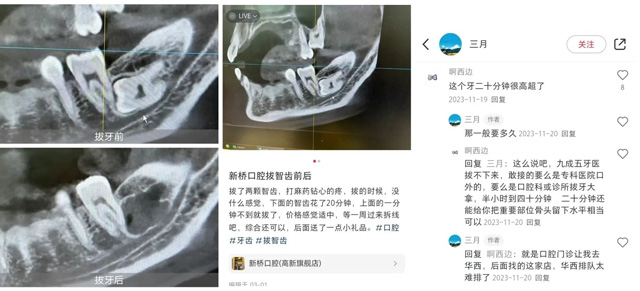 曾有一位接受过徐医生治疗的患者将其拔高难度智齿的牙片发布在小红书,迅速引起了大量围观,甚至有不少同行也纷纷慕名而来留言点赞。