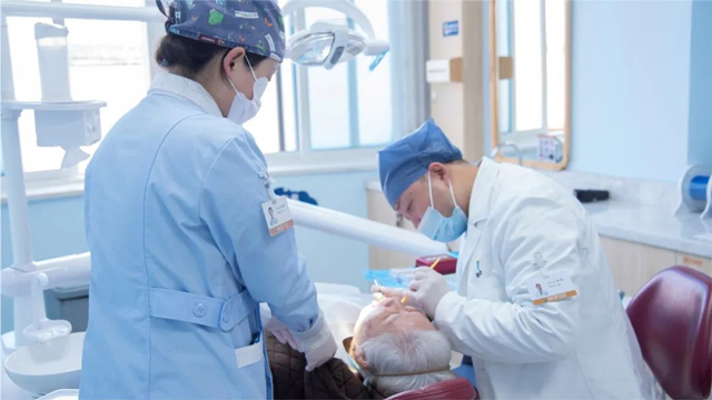 由于不能拔牙和种牙,陈刚医生建议她先治疗龋齿,通过根管治疗恢复咀嚼功能,嘴里已经松动的牙齿等其自然脱落后,再安装义齿。
