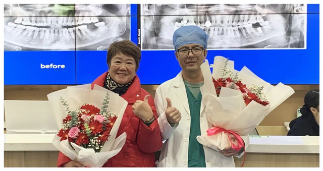 上午10:43分,吴建方医生向镜头挥手,示意手术完成。在场观众对其7分钟完成“缺牙重生”的精湛技术报以热烈的掌声和高度赞扬。
