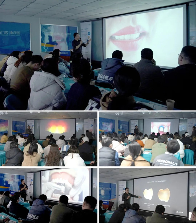 在理论阐述环节刘涛院长带来了有关全瓷美学修复分享,深入剖析了全瓷修复体材料强度高、生物相容性优、美学效果佳的独特性质。同时,刘涛院长结合实际案例,生动展示了全瓷修复体在不同适应症中的灵活应用,并深入探讨了患者在使用过程中可能遇到的常见问题及解决方案。这些案例不仅涵盖了前牙美学区的复杂修复,还包括了后牙功能区的耐用性考量,为参会医生提供了宝贵的参照资料。