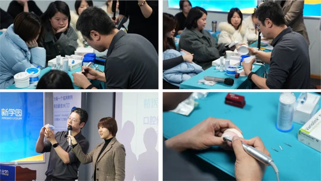 作为此次内训会的重点,刘涛院长在实操环节从嵌体、贴面修复的牙体制备及修复粘接等关键环节,均进行了详尽的讲解和演示。参会医生通过现场观摩和亲手实践,加深了对相关技术的理解,并熟练掌握了其操作技巧。