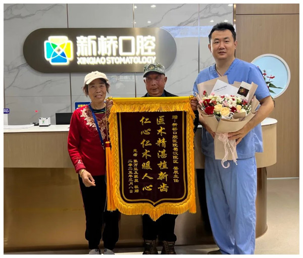 近日,新桥口腔成都蜀汉院区上演了温馨一幕。74岁的张叔叔在完成半口种牙手术后第二天,便带着锦旗来到医院,赠予种植专科主任姜辰医生及其团队,表达自己的感激之情。张叔叔感慨道,“医术精湛,温暖人心,这就是我的肺腑之言。牙齿种好了,感觉好极了!非常感谢姜医生团队,让我从此再享口福!”