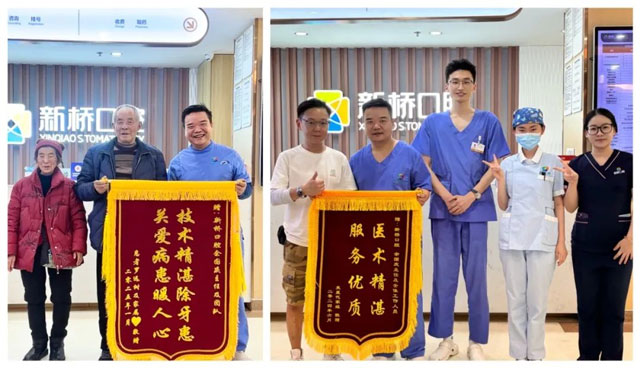 为了改善邹叔叔的口腔健康状况,余医生首先为他进行了上颌牙的残根拔除,在经过详细的术前评估,确认一切安全后,在全程心电监护下完成了上半口即拔即种手术,并在当天佩戴了临时牙冠。术后,邹叔叔感觉良好,如今,他不仅成功恢复咀嚼功能,更成了新桥口腔的“义务宣传员”,逢人便推荐余国庆医生的“金口碑”。