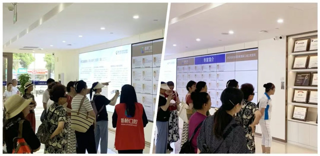步入宽敞明亮的接诊大厅,老顾客们在工作人员的陪同下,逐步了解新桥口腔的发展历程。专家墙上群英荟萃、荣誉墙满载“高光”时刻——从一家专科诊室到如今拥有11家院区的国家三级口腔医院,每一块展板都在诉说着新桥口腔对好口福的坚守与承诺。
