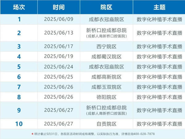 6月数字化种植牙手术直播活动排期表