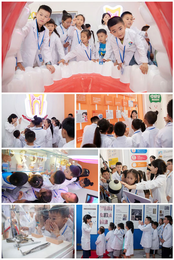 “口腔奇妙屋”科普馆设有5个主题板块,包括牙齿结构模型互动区、口腔趣味知识科普区、口腔进化头骨模型区、口腔治疗老器具展示区、世界口腔医学发展探索区。“口腔奇妙屋”科普馆正式开馆后,不仅将长期对患者开放,还将作为小牙医研学营活动的科普基地。