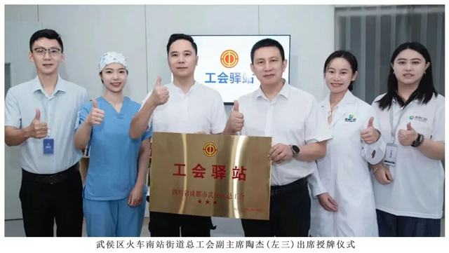 秋意渐浓,城市脉搏中涌动着别样的暖流。为积极响应号召,构筑社会关爱户外劳动者的实体化桥梁,在武侯区火车南站街道总工会的大力支持下,9月11日,新桥口腔医院工会驿站正式投入运营,火车南站街道总工会副主席陶杰出席授牌仪式,并为工会驿站授牌。
