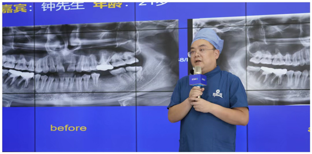 与此同时,两位专业解说也通过实时画面,为观众讲解了手术中的关键操作与技术要点——从面部消毒到备洞精度,再到植体植入,每一个细节都体现着规范化医疗的质量把控,极大提升了观众对种植牙手术的认知水平和辨别能力。