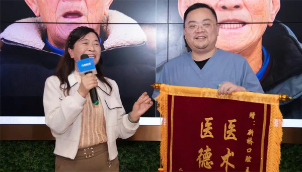 “晚年生活更有滋味了!”日前,在新桥口腔成都衣冠庙院区,专程从大邑赶来的章阿姨将一面满载谢意的锦旗亲手赠予新桥口腔医疗总监王锋医生,喜悦之情溢于言表:“感谢新桥口腔,感谢王锋医生,让我又能畅快吃饭,这日子啊,总算又香了!”