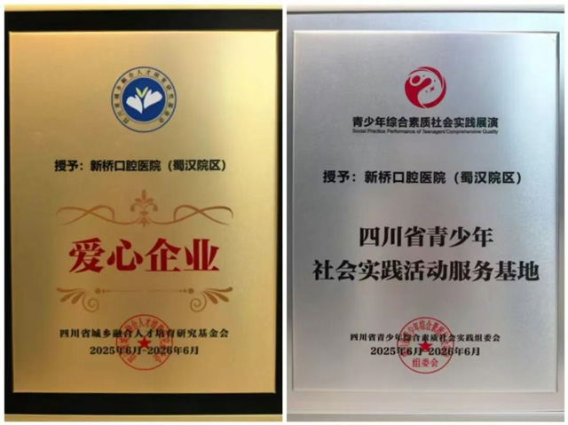 新桥口腔成都蜀汉院区负责人表示:“此次获授‘四川省青少年社会实践活动服务基地’与‘爱心企业’称号,不仅是对我们多年来深耕青少年健康教育、积极践行企业社会责任的高度认可,更是一份沉甸甸的鞭策。我们倍加珍视这份荣誉,并将以此为全新起点,持续发挥口腔医疗领域的专业特长与平台资源优势,让青少年社会实践活动与健康科普服务更精准契合成长需求;同时,我们也将不断探索‘寓教于医、寓教于乐’的协同育人新模式,以切实行动为培养身心健康、全面发展的时代新人贡献更多力量。”