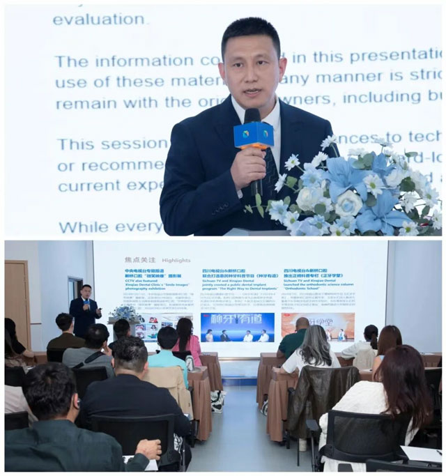 在参观结束后,研访会的交流环节持续深入。新桥口腔项目部经理郑杨凡就如何实现医疗价值与患者体验的双重提升,分享了新桥口腔在品牌建设与患者服务方面的创新实践。