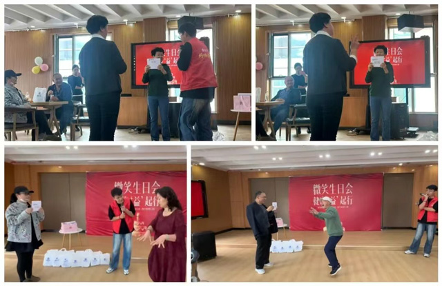 活动的压轴环节是温馨的集体生日会。工作人员缓缓推出精美的生日蛋糕,全场齐声高唱《生日快乐歌》。老寿星们头戴生日帽,在声声祝福中,共同许下美好的心愿,并一起分享了这份象征甜蜜与幸福的蛋糕。