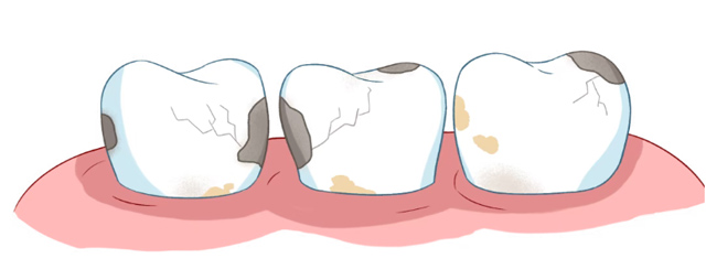 而且细菌还会把糖分变成“牙菌斑”的“建材”,让牙菌斑牢牢粘在牙齿上,持续释放酸性物质,慢慢在牙釉质上“凿洞”,最后形成蛀牙。所以“甜”的伤牙,是“间接但持续”的:糖分不直接伤牙,却给细菌提供了“破坏牙釉质的武器”,长期下来,牙齿不仅会敏感,还可能发展成蛀牙、牙髓炎。
