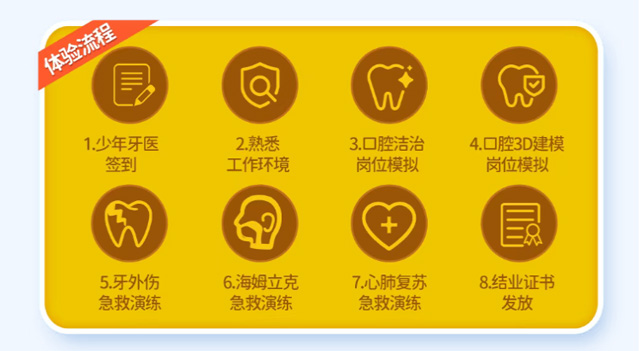 体验内容:2个岗位模拟(口腔洁治/口腔3D建模)、3大急救演练(牙外伤/海姆立克/心肺复苏 )