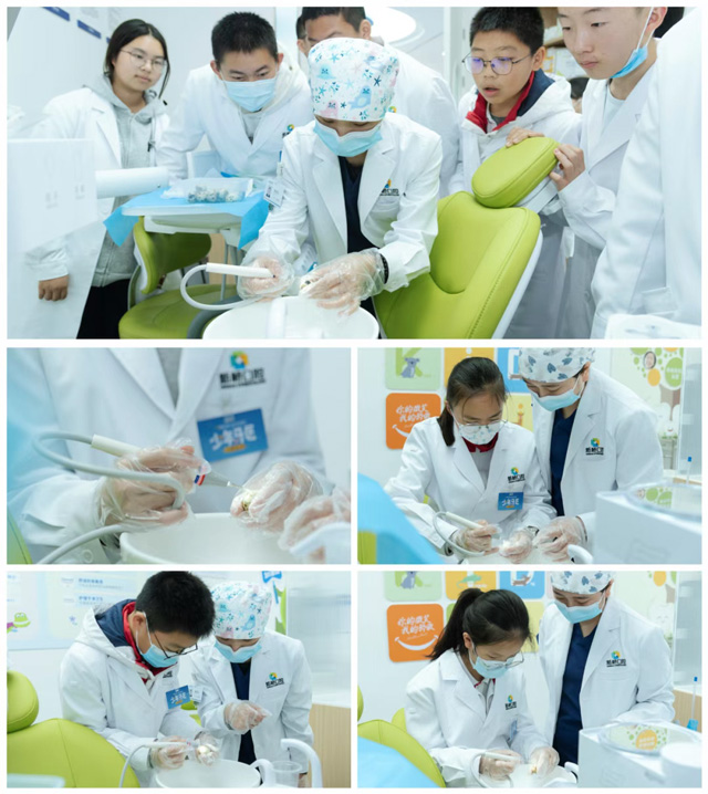 校方带队老师对本次口腔医生职业体验活动给予了充分肯定,认为这种“走出教室”的学习模式极具意义,让同学们在亲身体验中收获了超越课本的宝贵知识。新桥口腔儿童早期矫正专科主任周媛媛也深有感触地表示,“看到同学们在职业实践中展现出的专注与热情,就仿佛看到了未来牙医的模样。新桥口腔深感荣幸,能通过“少年牙医研习班”为孩子们开启医学职业启蒙,激发他们对医学领域的兴趣,这也是我们定制开启这一特色项目的初心所在。”