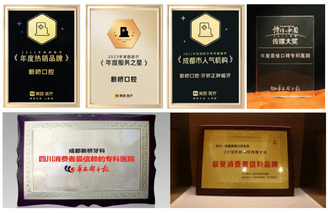 作为在成都深耕二十余年的全国连锁口腔品牌,新桥口腔以“华西品质一脉相承”为办院宗旨,汇聚了200余名以四川大学华西口腔医学院为主的一类高校口腔知名院校专科人才,持续引进并融合国际前沿技术与服务理念。凭借优良的医疗技术,先进的设备,舒适的就诊环境和优质的医疗服务,在广大群众中树立了良好的口碑,赢得了社会各界的广泛认可:曾先后获得美团“年度热销品牌”、“年度服务之星”、“成都市人气机构”,四川日报报业集团“最受消费者信赖品牌”,华西都市报“年度最佳口碑专科医院”、“四川消费者最信赖的专科医院”等诸多荣誉。每一步成长,皆经市场检验,不负消费者托付。