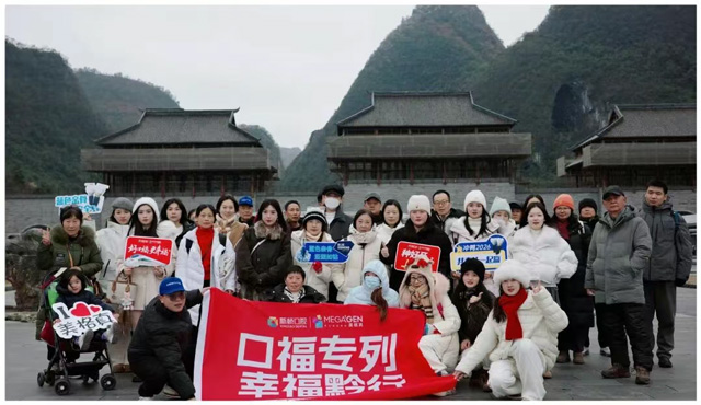 金秋的约定,在温暖的陪伴中如期成行。1月19日,由全球知名种植体品牌——韩国美格真为我院半全口种牙顾客提供的“口福专列 幸福黔行”之旅,在新桥口腔成都总院欢乐出发。四天三晚的旅程中,大家不仅饱览了贵州的壮美山水,更用灿烂笑容见证了“口福新生”后的美好生活。