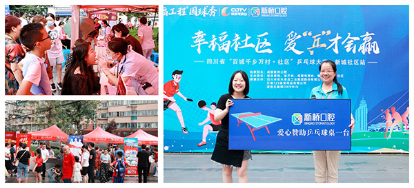 6月25日下午,新桥口腔携手成都电视台、省乒协共同举办的口福工程·国球秀主题活动第四站走进成都新城社区。作为四川省“百城千乡万村·社区”乒乓球大赛重要组成,国球秀以乒乓球比赛为主体,穿插文艺汇演、趣味运动等环节,成为这个夏天最火热的社区运动,广受老少居民们喜爱!