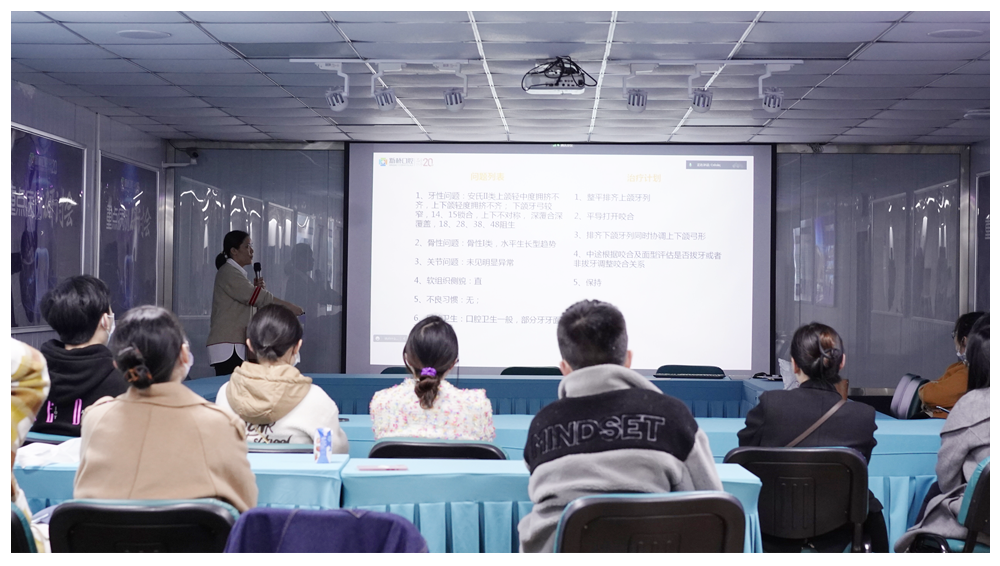 在本次研讨会现场,新桥口腔成都衣冠庙院区正畸医生郝璐、高新院区正畸医生王亚楠、张晖榕、玉双院区门诊主任鲁维希、蜀汉院区正畸医生闻轩,分别就各自近期应用支抗钉辅助正畸治疗的临床实例,进行了全面解说及最终效果展示。