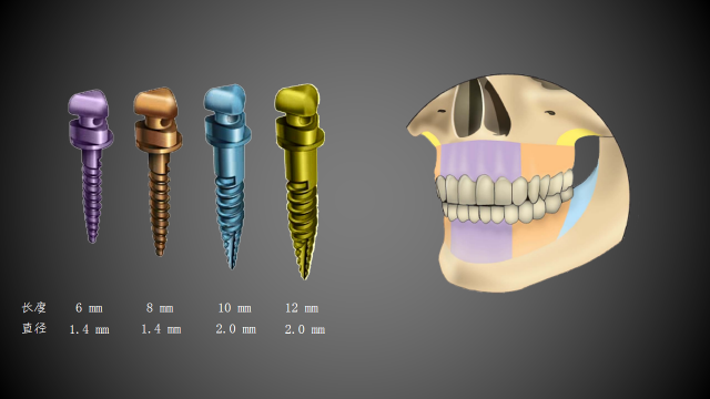小钉子,大作用。支抗钉,也就是俗称的“骨钉”,在正畸过程中使用非常普遍。材料通常为钛合金或不锈钢材料,有不同的粗细、长短等,临床中会根据植入的部位、作用等选取合适的规格。它有很多优势,操作简单、创伤小、痛苦少,作用好,现已成为矫治过程中的最强辅助工具。