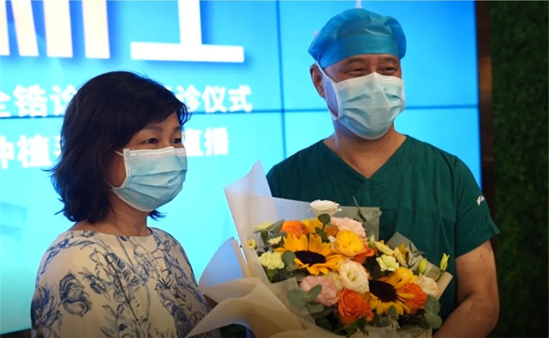 2022年8月,新桥口腔种植手术直播圆满结束,刘果生与患者合影