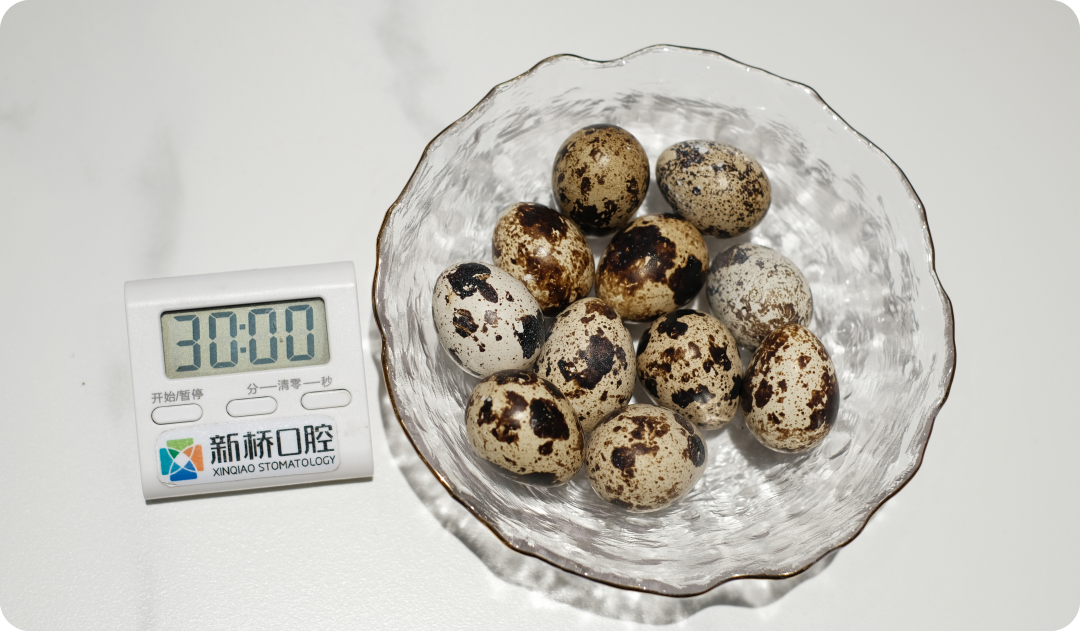 作为洁牙的教学和演示,鹌鹑蛋是“常客”。其原因有两点,一是鹌鹑蛋蛋壳表面棕色的斑点是分泌的色素在蛋壳上的沉积,与人们牙齿上沉积的烟渍、茶渍、咖啡渍非常类似。二是蛋壳膜上首先出现微小的钙沉积点,逐渐堆积成完整的蛋壳,也就是说蛋壳与人类牙齿上依附的牙结石形成过程与成分类似。