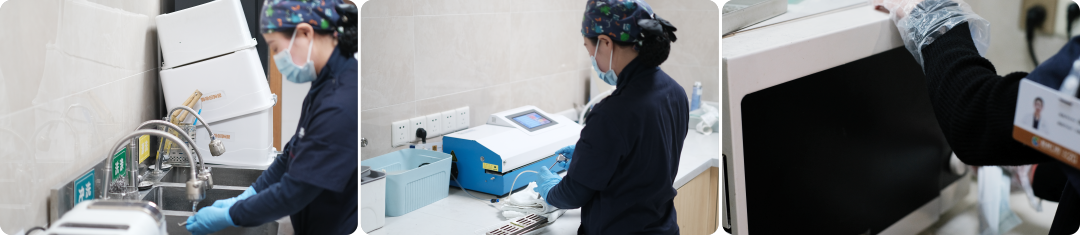 在鹌鹑蛋洁治环节结束后,对于洁治器械的消毒,也在本次洁牙技能PK赛考核之中。由于洁治器械的特殊性,要经过冲洗,洗涤,漂洗、密封打包、高温高压消毒等严格消毒环节,最终保存于无菌存放柜中。只有严格的把控消毒端口才能让顾客放心的就诊环境与就诊安全。这也是新桥口腔洁牙项目常年领跑美团西南地区销量和好评榜的原因之一。