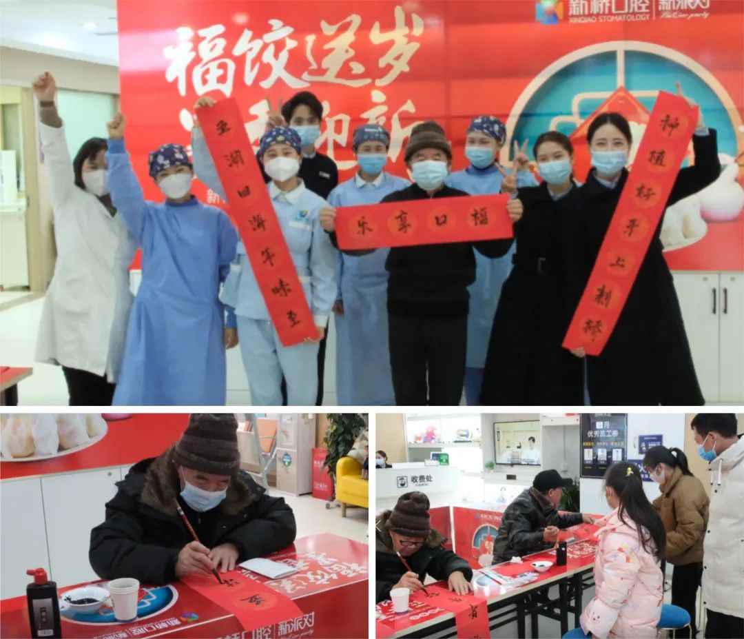 小年至年味浓,新桥口腔喜气洋洋的仪式感也安排起来了!今天下午,二十多位顾客朋友齐聚新桥口腔,大家一起包饺子、写春联、享口福,在彼此的问候和祝福声中辞旧迎新,共度一段喜庆热闹的团圆时光!