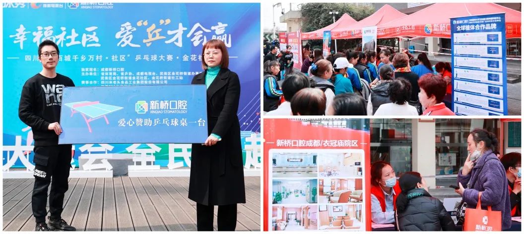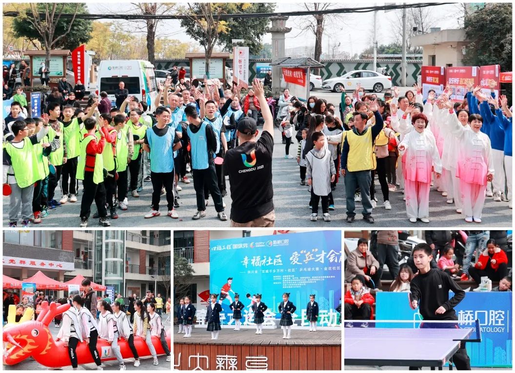 燃动春日,快乐拉满!新桥口腔携手成都电视台、省乒协共同举办的口福工程·国球秀主题活动近日接连开赛!昨日(2023年2月25日)下午,成都金花社区上百位乒乓球、健身和文艺爱好者应邀而来,以球会友、纵情歌舞,一展幸福社区健康达人风采!