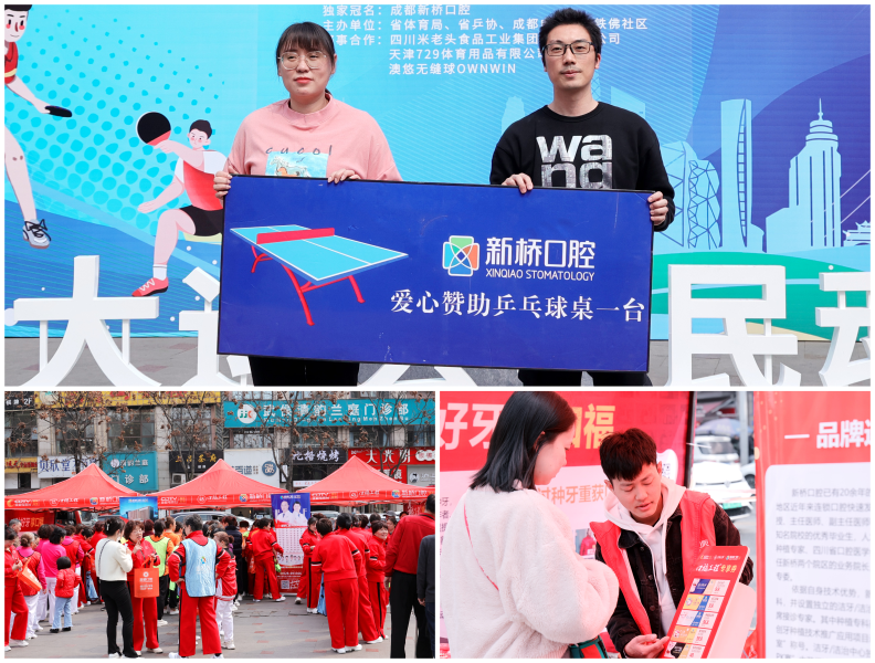 助力四川省“百城千乡万村·社区”乒乓球大赛,昨天(2023年3月4日)下午,口福工程国球秀第十三站走进成都铁佛社区!新桥口腔携手成都电视台,与数百位铁佛社区居民一起,沐浴春光,努力“乒”博,共享运动快乐!