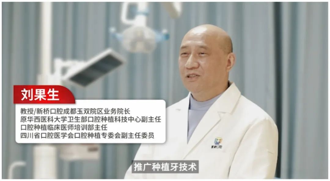 2020年,原华西牙种植医院副院长李华出任新桥口腔成都高新院区业务院长,2021年,刘果生教授出任新桥口腔成都玉双院区业务院长。此外,新桥口腔还拥有以医疗总监王锋、种植专科主任马燕、技术总监陈刚等为代表的一大批优秀的口腔种植人才。