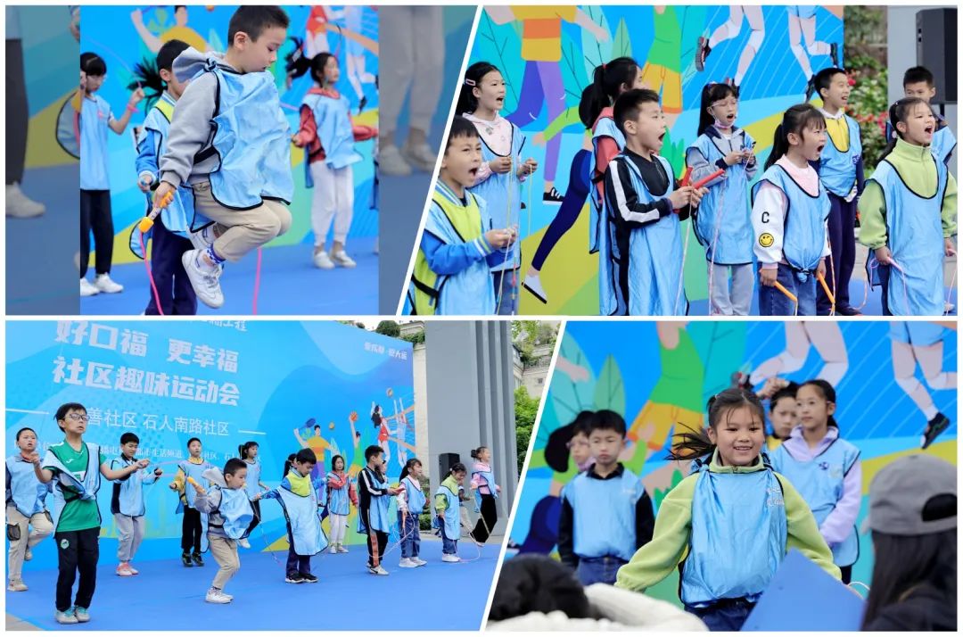 少年强,则国强!跳绳作为一项具有悠久历史的健身运动,对增强青少年体质有极佳效果。社区趣味运动会特设“新桥杯”跳绳挑战赛,7~18岁跳绳爱好者都可报名参加。活动现场,数十名小选手们个个精神抖擞,他们用力挥动着双臂,彩色的跳绳在空中划出一道道优美的弧线,将赛场变成了舞台。