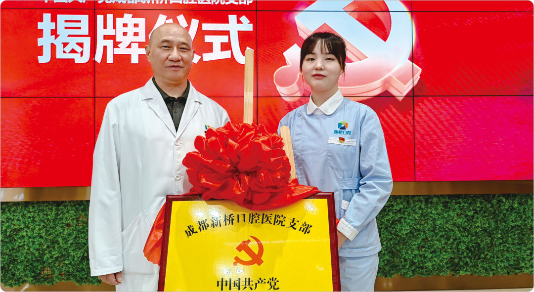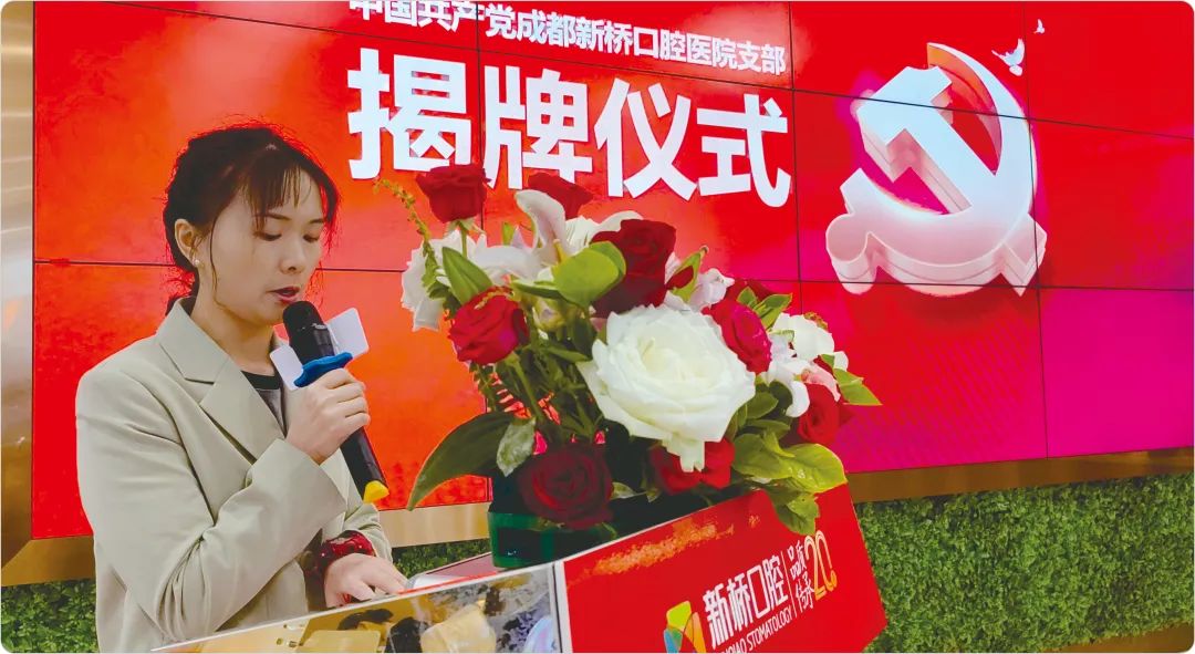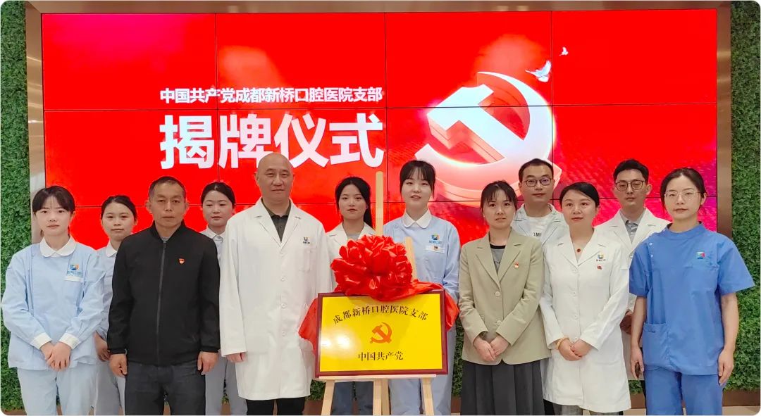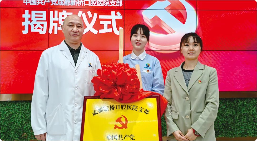 为进一步加强新桥口腔党组织建设,用高质量党建引领企业高质量发展,在成都市武侯区浆洗街道蜀汉街社区和各级党委的关怀、指导下,新桥口腔于今日上午正式举行党支部成立揭牌仪式。成都市武侯区浆洗街道蜀汉街社区党委副书记高桂华、华西种植专家/新桥口腔成都玉双院区业务院长刘果生、新桥口腔第一届党支部书记蒋越等相关负责人出席本次仪式。