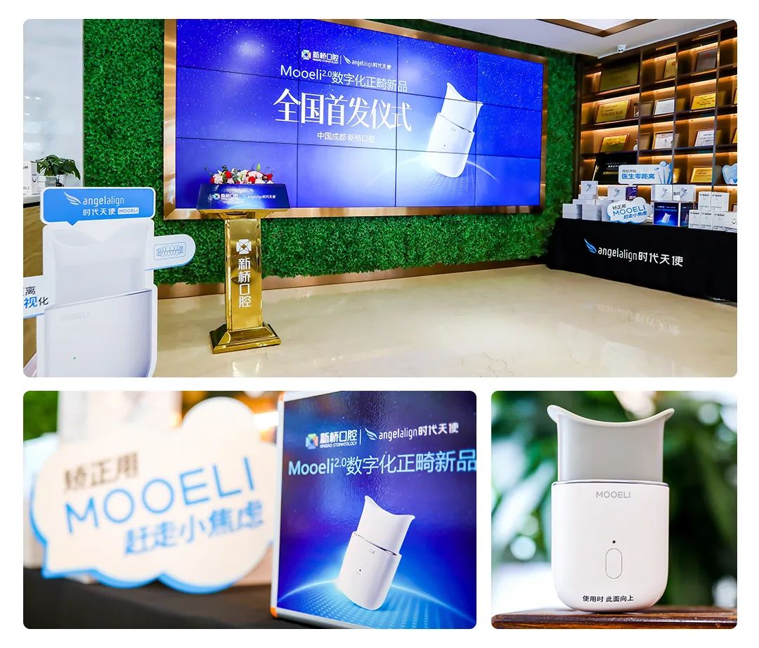 当天上午,Mooeli2.0数字化正畸新品亮相新桥口腔成都衣冠庙院区。据了解,Mooeli2.0是时代天使口腔数字化解决方案的新一代产品,通过便携扫描口内影像与正畸远程监控系统实现医患智联,从而定制、反馈、优化矫治器佩戴,可实现省时高效灵活复诊,开启数字化正畸的诊疗新方式。