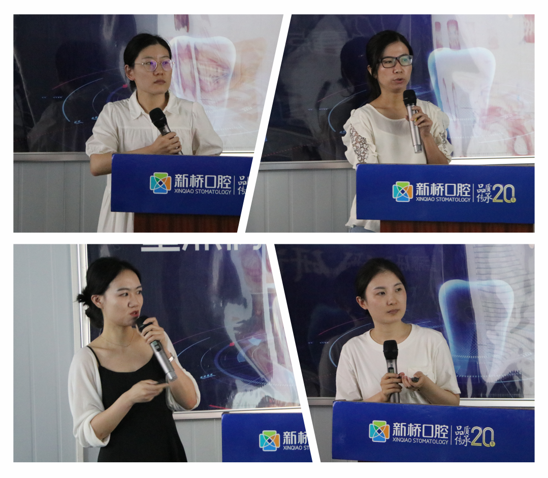 随后,新桥口腔成都衣冠庙院区郝璐医生、高新院区吴宛玲医生、光华院区袁曦医生、玉双院区张桥医生分别以“隐形矫治磨牙近中移动”“缺失4颗2的深覆合病例讨论”“摆式矫治器推磨牙向后”“隐形矫正治疗重度深覆合”为题,汇报了近期接诊的疑难病例的矫治思考和心得体会。