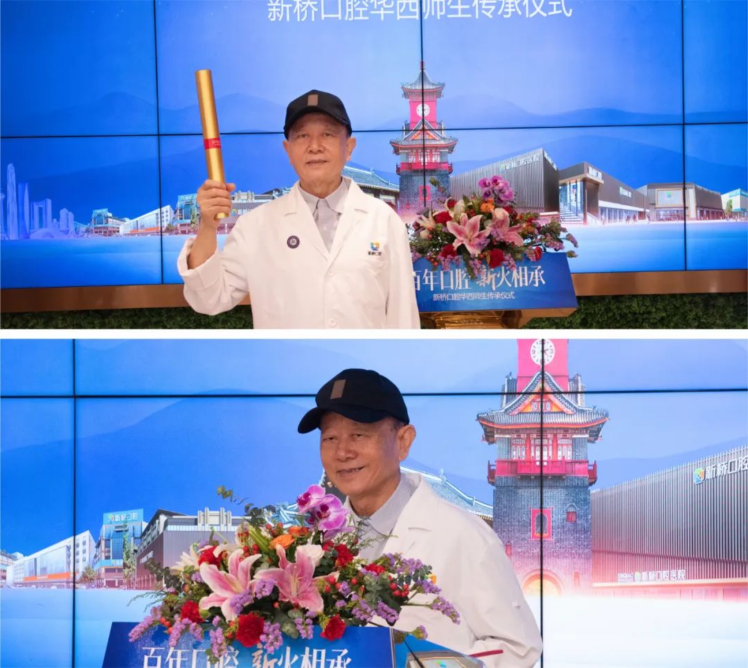 新桥口腔华西师生传承仪式在《那一年我们考上了华西》的访谈纪录片中,拉开了温情怀旧的帷幕。新桥口腔60年代华西医生代表、原华西口腔医院颌面外科名老专家余自能手持象征华西技艺和精神的接力棒率先走上讲台。作为新桥“华西品质”的奠基人之一,华西口腔名老专家余自能老师自1965年毕业就一直从事颌面外科工作,致力于为广大病患解除痛苦,至今已有58个年头。仪式上,余自能老师带领大家回顾了从上个世纪50年代“四川医学院”开始,到1985年恢复“华西医科大学”的华西校史。“百余年沧海桑田,母校的校名几经变迁,但华西口腔的技艺和精神在每一位学子身上传承了下来!我看到今天这里有我曾经的学生,有我学生的学生,他们都在这里,在新桥口腔,我感到很欣慰!我们华西精神后继有人!”余自能表示。