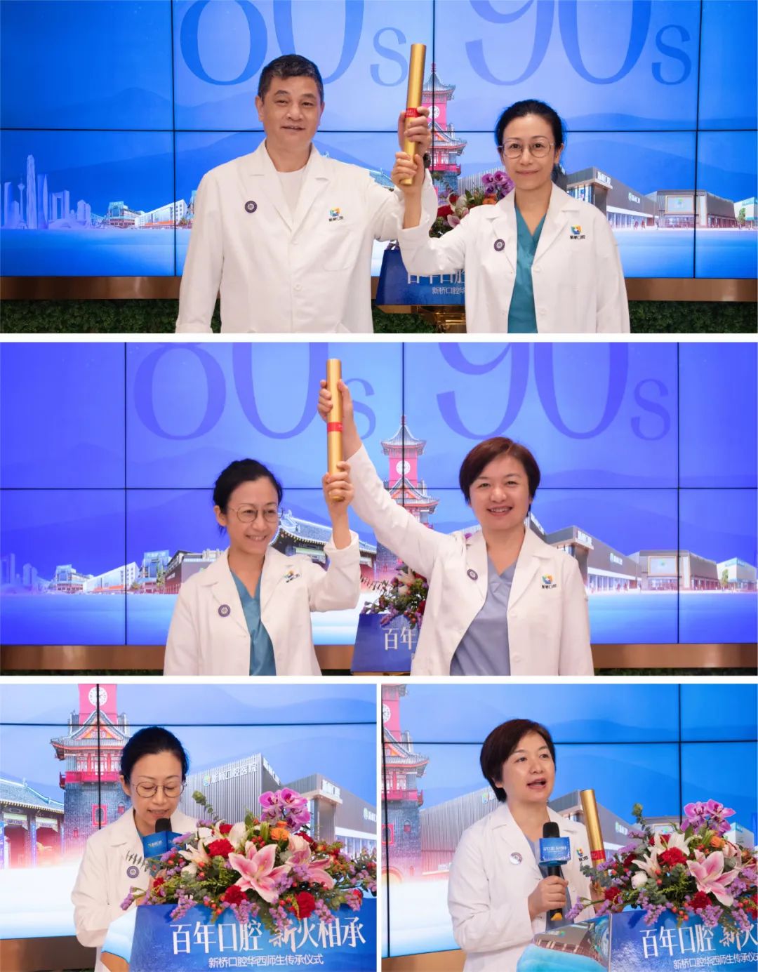 新桥口腔60年代、70年代、80年代、90年代、00年代、10年代华西医生代表共举华西校训