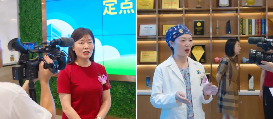 成都市青羊区东坡社区卫生服务中心主任胡雪飞、新桥口腔儿童早期矫专科主任周媛媛接受媒体采访