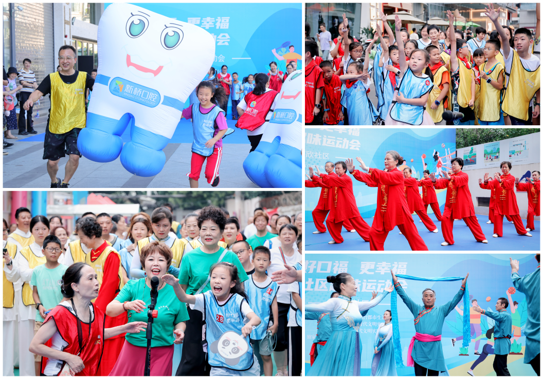 将运动之风吹进社区,助推全民健康事业发展!2023年4月,新桥口腔携手成都电视台共同举办的口福工程·趣味运动会在石人南路和同善社区激情首发。由春到秋,历时6个月,趣味运动会陆续走进成都铁佛、蓓蕾、龙腾、肖家河正街、楠欣、水井坊、盛兴社区,掀起了广大市民爱运动、护好牙的行动热潮!10月14日,口福工程·趣味运动会即将在盛华社区迎来收官之战!