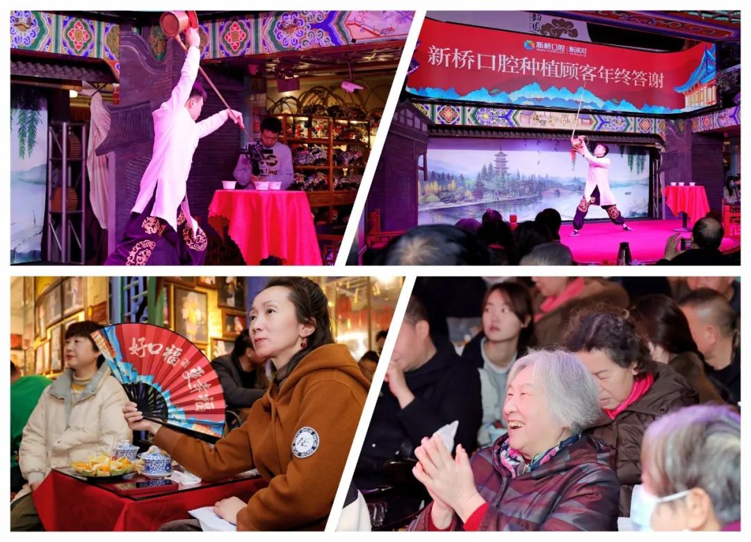 1月18日,为回馈广大顾客厚爱,新桥口腔“品川腔雅韵 赏非遗变脸”种植顾客年终答谢活动在宽窄巷子欢乐举行,近200位种植会员和医务人员代表齐聚一堂,看大戏、品香茗、尝名吃、拿好礼,将“好口福更幸福”的健康生活理念和老成都的慢生活精彩融合,共享一场跨越千年的巴蜀风情“盛宴”!