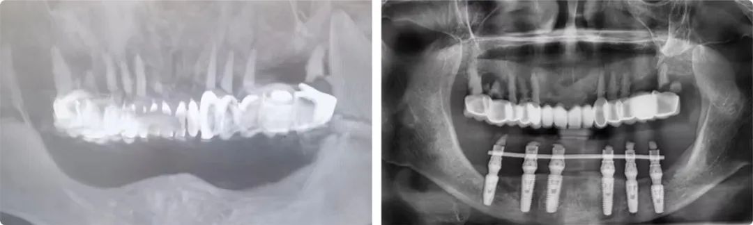 老人和家属非常信任姜辰,接受了这个方案。术中植入了6枚植体,术后即刻修复完成戴牙,老人的咀嚼功能当天恢复。