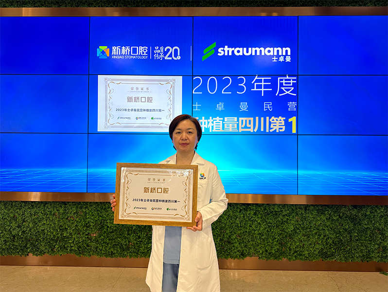 2024年3月15日,新桥口腔荣获“2023年瑞士士卓曼(ITI)民营种植量四川第一”荣誉认证,全球知名高端种植体品牌—瑞士士卓曼为新桥口腔颁发奖牌。