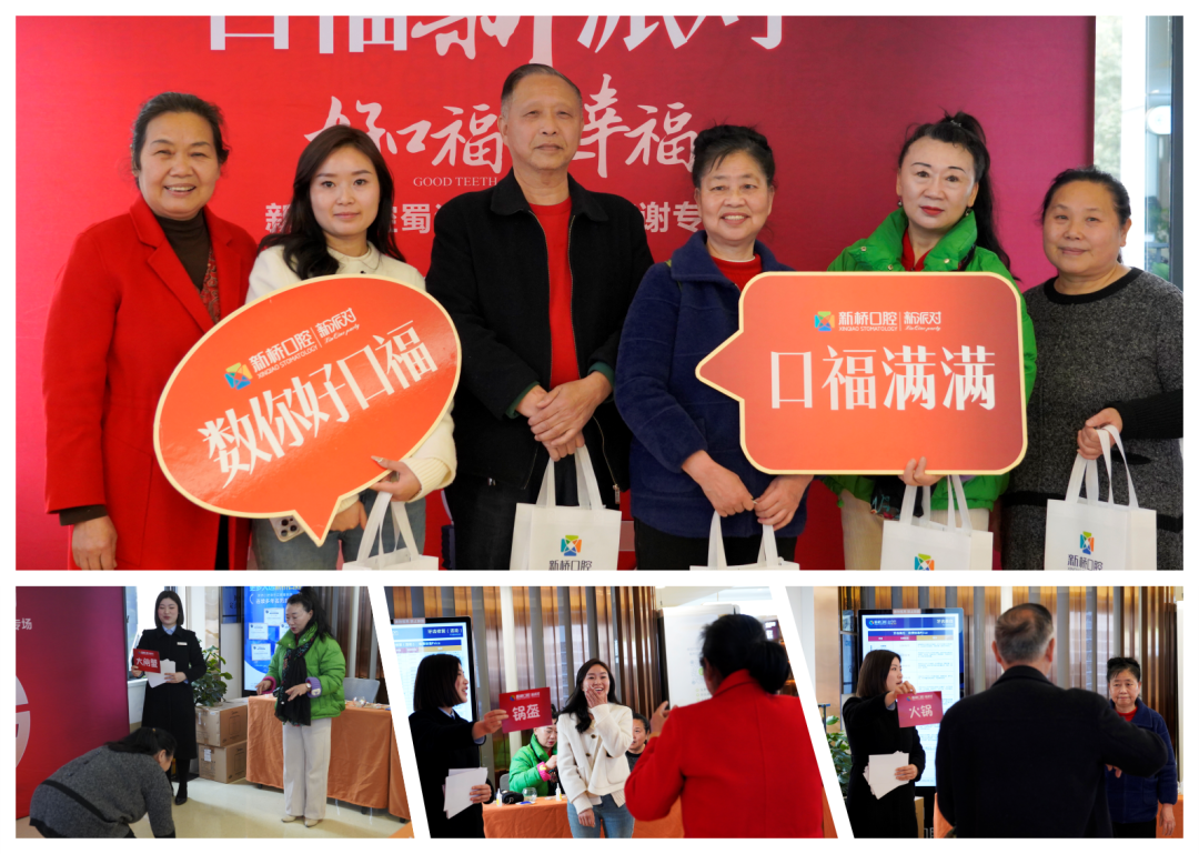 “你划我猜”的游戏在主持人的带领下拉开序幕,苹果、兔头、火锅、大闸蟹,这些种牙后就被轻松“解锁”的美食,叔叔阿姨们能准确猜中吗?参与游戏的顾客中,有一同前来的亲朋好友,还有相伴几十年的知心老伴,他们凭借对彼此多年的了解和深厚的默契,都纷纷成功完成挑战,赢得了新桥口腔口福大礼包。