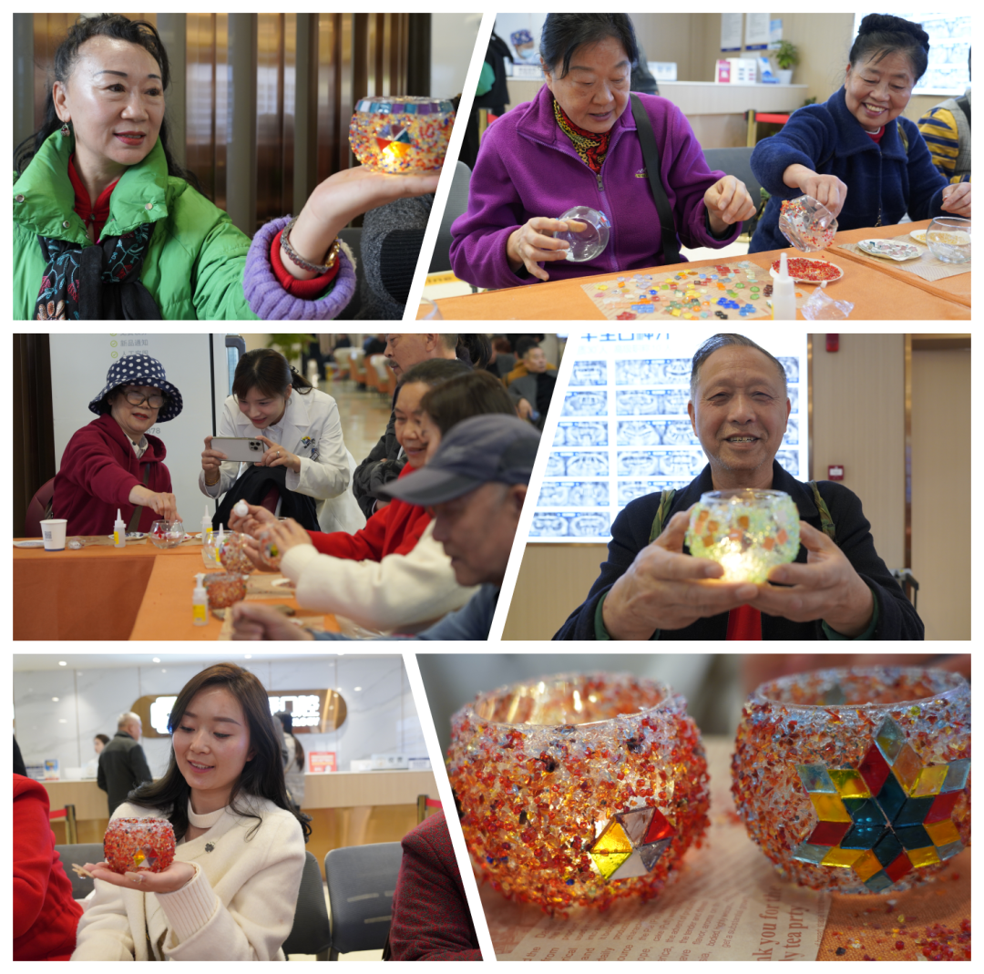 制作过程中,每位参与的顾客都充分发挥了自己的创造力和想象力。他们通过设计、拼贴、上胶等工序,将一颗颗彩珠和一块块彩色琉璃小砖精心粘贴在玻璃灯罩上,让原本透明的灯罩瞬间焕发出浪漫而绚丽的光彩。来参加活动的甄阿姨开心的说:“来新桥口腔参加活动我真的很开心,我在这里不仅种好牙,还能学习制作精美的工艺品,同时锻炼了我们的动手动脑和思维能力,又有益于身心健康,真的很不错!”