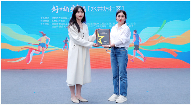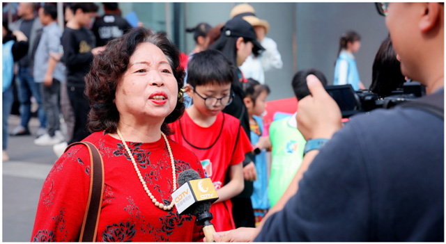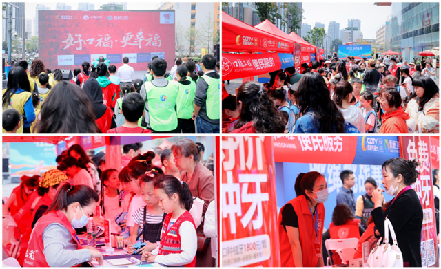 和挑战者同样紧张忙碌的,是口福工程公益服务区的志愿者们。因为口福工程新一季福利发布,口腔健康筛查、咨询和口腔福利领取工作桌前都排满了长队,运动场上的欢呼声和这里热闹的交谈声汇集在一起,将社区幸福秀的美好主题体现得淋漓尽致。水井坊社区居民肖阿姨在接受成都电视台记者采访时高兴地说:“我们老年人在这项活动中既锻炼了身体,又领到很多口腔福利,真是一举两得!非常感谢各举办单位,希望口福工程越来越好!”