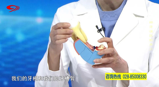 李晓玲:造成牙齿松动的原因除了外伤之外,绝大多数是因为牙周炎。牙周炎就是牙齿周围组织的一个炎症,炎症长期存在就会破坏牙齿的支持组织,特别是牙槽骨,每发一次炎牙槽骨的骨头就会被破坏吸收一次。