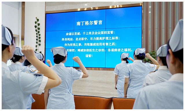表彰大会最后,在新桥口腔成都蜀汉院区优秀护士刘欢的带领下,在场护理人员重温了南丁格尔誓言。庄严肃穆的宣誓仪式,一句句铿锵有力的誓言,大家感受着提灯女神洗涤心灵的谆谆教诲 ,也倾注着自己对护理事业的无限深情。
