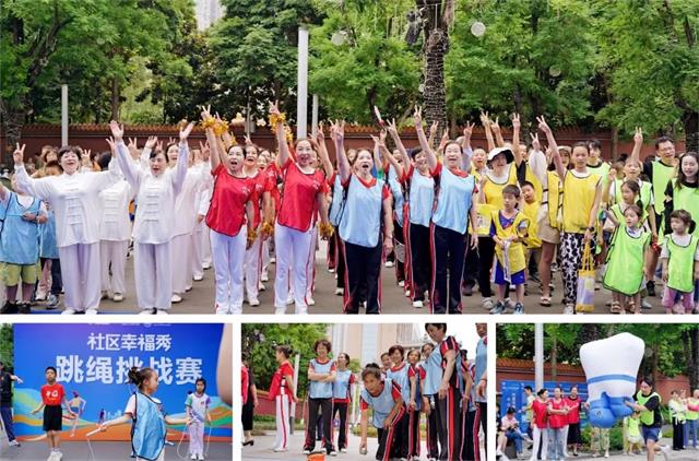 舞台上歌舞精彩,不远处赛场上的比拼更是如火如荼!紧张激烈的爱牙知识抢答,令人捧腹的旱地龙舟赛,还有世运“同款”地掷球等团队趣味竞技,不论是参赛者还是观赛居民都全情投入,加油声、欢呼声响彻赛场上空。