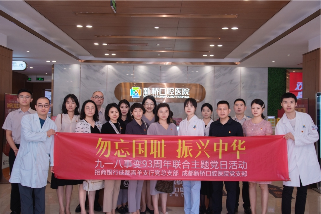 9月18日,成都新桥口腔医院党支部联合招商银行成都青羊支行党总支部举办了“铭记'九一八’联合主题党日活动”。