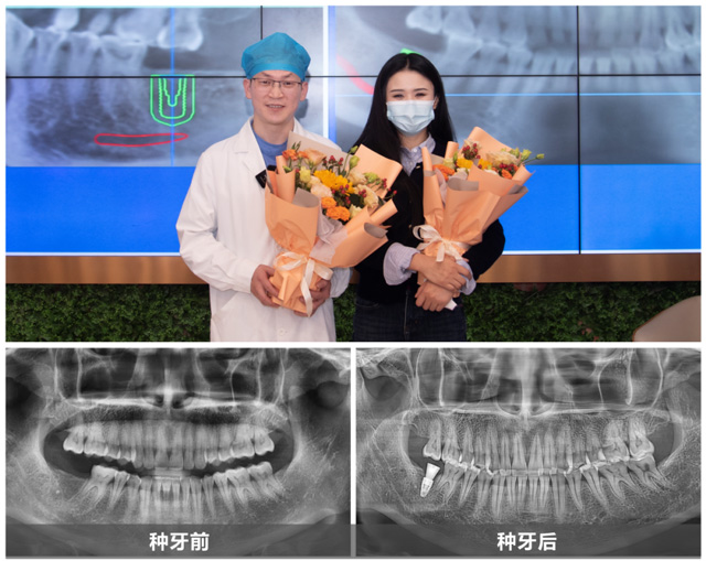 当现场观众还沉浸于李阳军医生行云流水般的操作中时,他已向直播镜头挥手示意宣布手术完成,仅用10分钟便为牟女士实现了缺牙重生。随后,李阳军医生和牟女士在热烈的掌声中来到观众们面前。